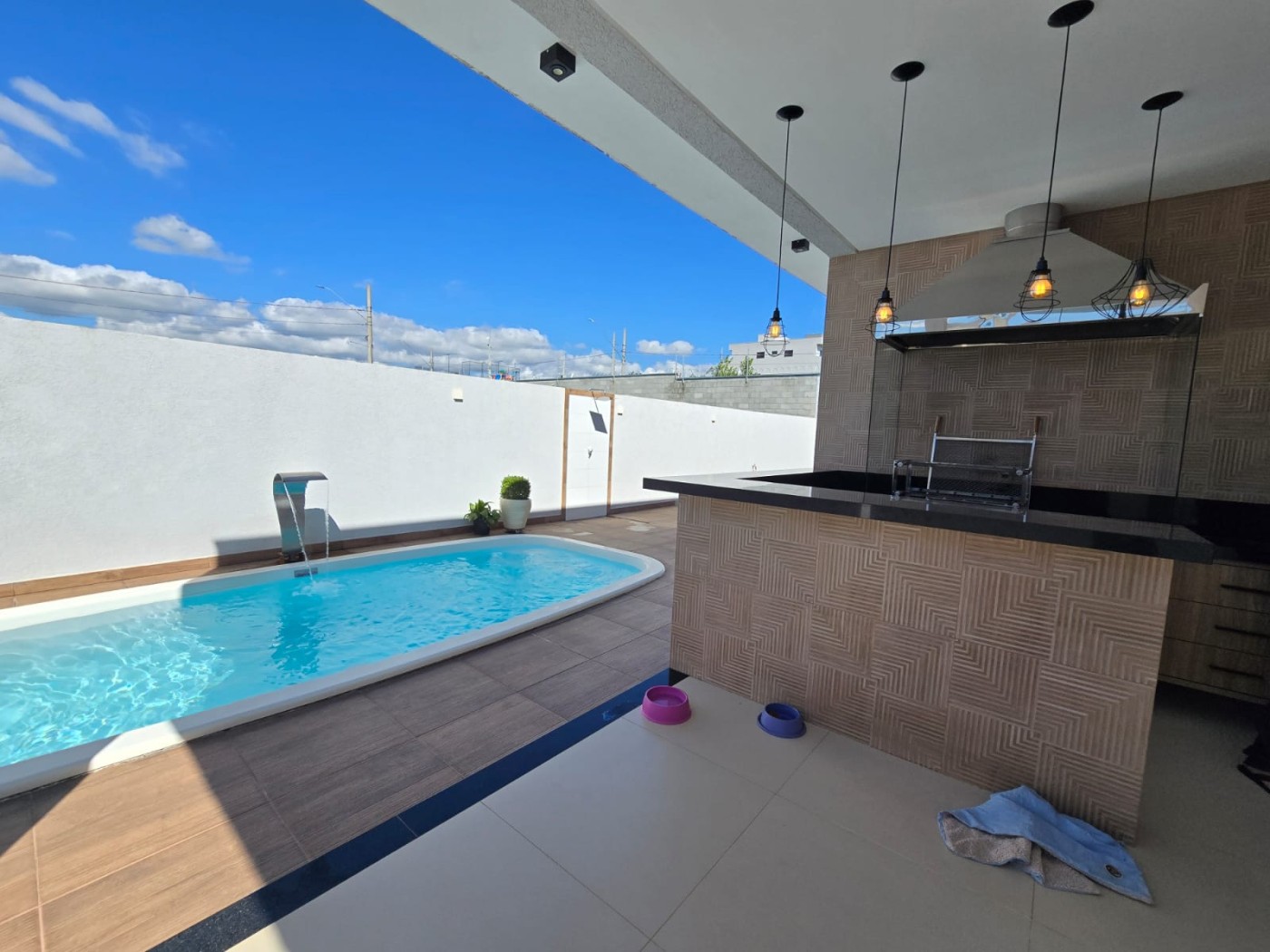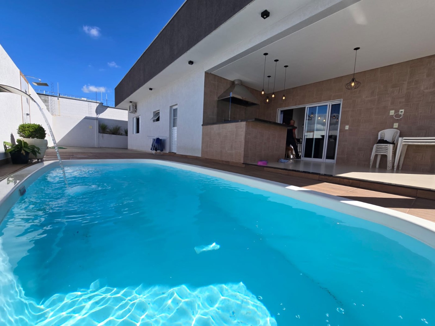 Linda area de lazer bem ampla com piscina