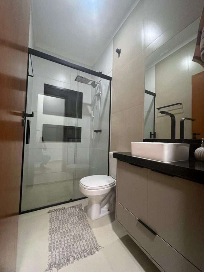 Planejados e banheiros com planejados, box(com película de segurança), vidros e duchas.