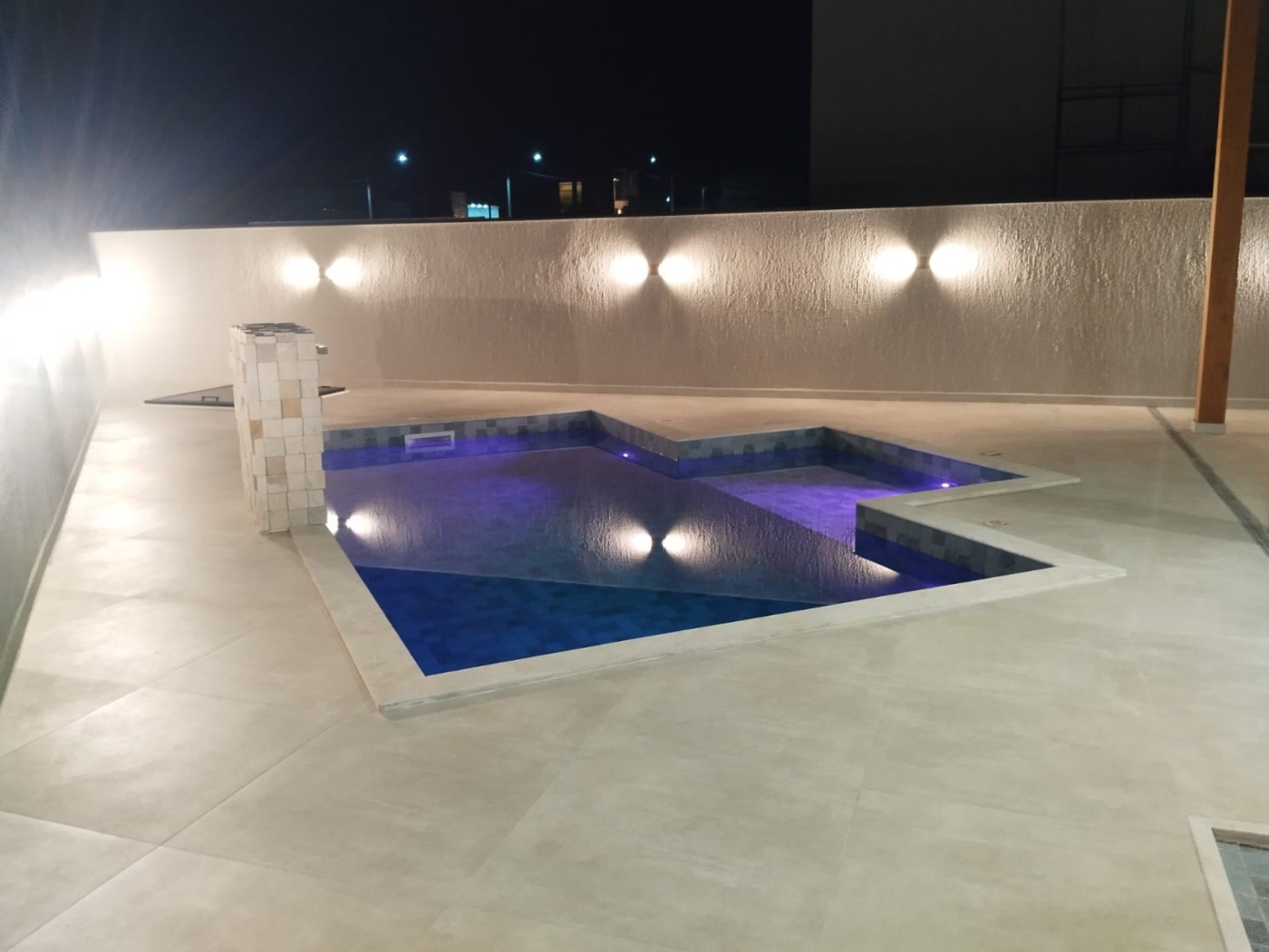 1-picina com cascata, azulejo hijau, luminária de Led.